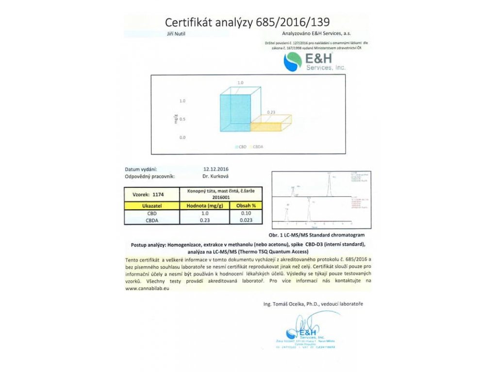 CBD konopná mast značky Konopný Táta se vyrábí z českého konopí, které se testuje na nepřítomnost herbicidů a pesticidů.Upozornění